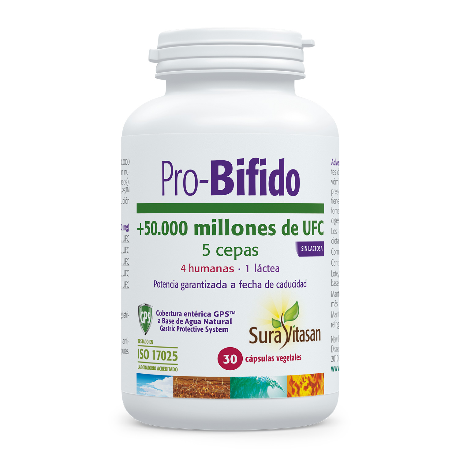 Pro-Bifido es un complemento alimenticio único, compuesto únicamente por 5 cepas específicas del género Bifidobacterium, con una potencia de 50.000 millones de UFC por cápsula y sin prebióticos. Estas cepas se encuentran entre las primeras cepas probióticas en poblar el intestino del bebé y se han investigado de manera exhaustiva sus posibles beneficios.